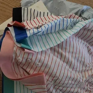 Fresh stripe patterns with a button-front accent for a simple but stylish touch.