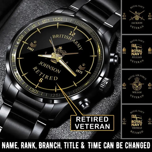 Personalized British Army Retired Custom Name & Rank Watch Printed