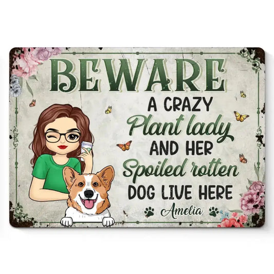 A Crazy Plant Lady And Her Spoiled Rotten Dogs Live Here - Dog Personalized Custom Home Decor Metal Sign - House Warming Gift For Pet Owners, Pet Lovers