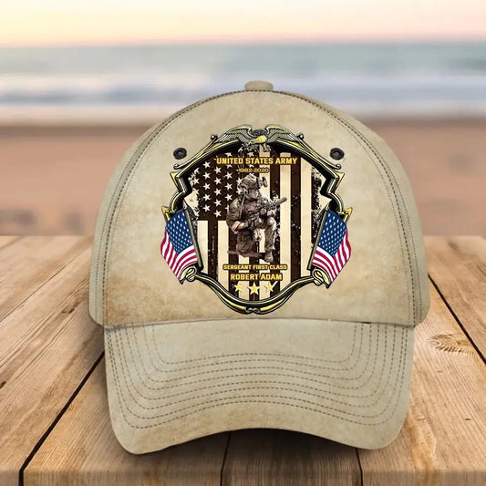 Personalized US Army Veteran Custom Name, Rank & Time Cap