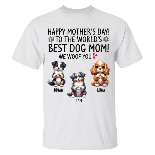 Happy Mother's Day Best Dog Mom I Woof You Custom Shirt For Dog Lovers - Dogs Giving Heart Hand Sign Cute Art Shirt