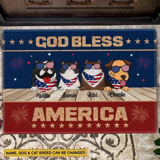 God Bless America - Personalized Doormat, 4th Of July Pet Doormat