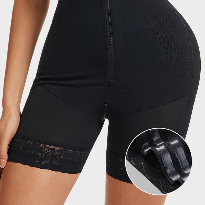 Inner hooks plus outer zipper ensure easy wear and strong tummy control.
