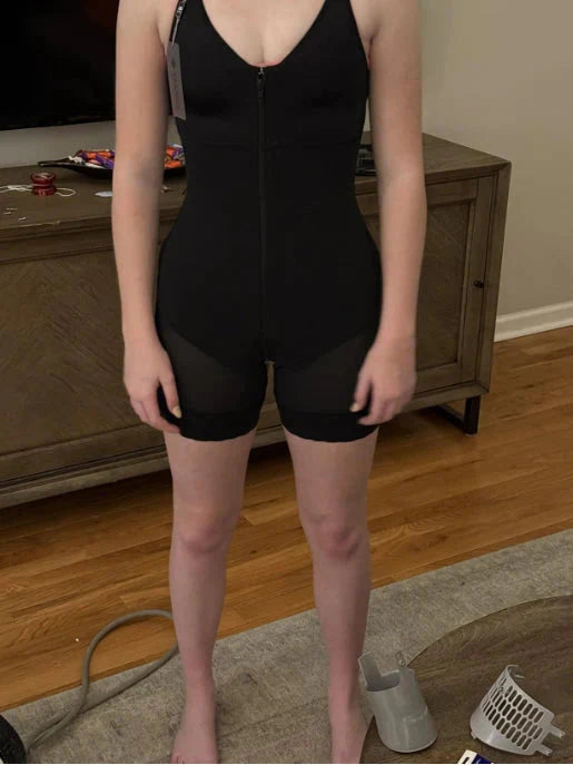 Designed with a built-in bra and high-compression tummy panel, this full-body shaper defines your silhouette from bust to thigh. Adjustable non-slip straps and a zippered crotch make it practical for daily wear, while its sleek shape flatters under any outfit—from dresses to suits.