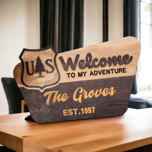 National Park sign & Forest Service Welcome Sign- family name sign, custom layered laser cut laser engraved, outdoor, wilderness enthusiast