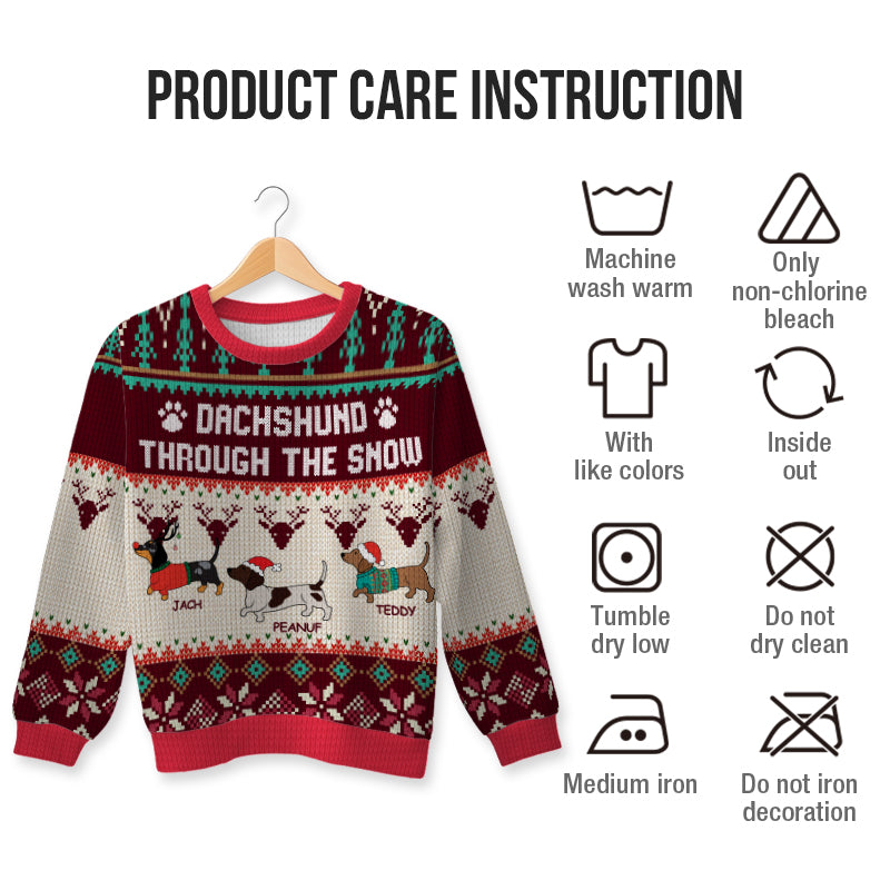 Dachshund Through The Snow - Ugly Sweater - Winter Christmas Sweater Christmas Gifts For Dog Lovers Personalized Custom Ugly Sweater