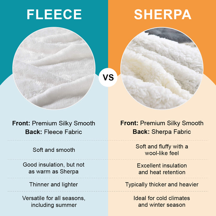 • There are 2 material options - Fleece and Sherpa. Choose the material that fits your purpose.
