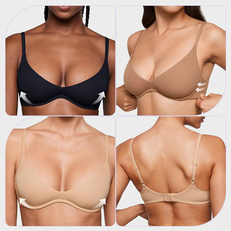 Designed with a deep plunge scoop, this bra disappears under camisoles and low-cut tops, creating a flawless, invisible finish. Perfect for smaller busts, it naturally enhances without extra padding, while for fuller busts it creates a minimizing effect. A versatile must-have for confidence and effortless style.