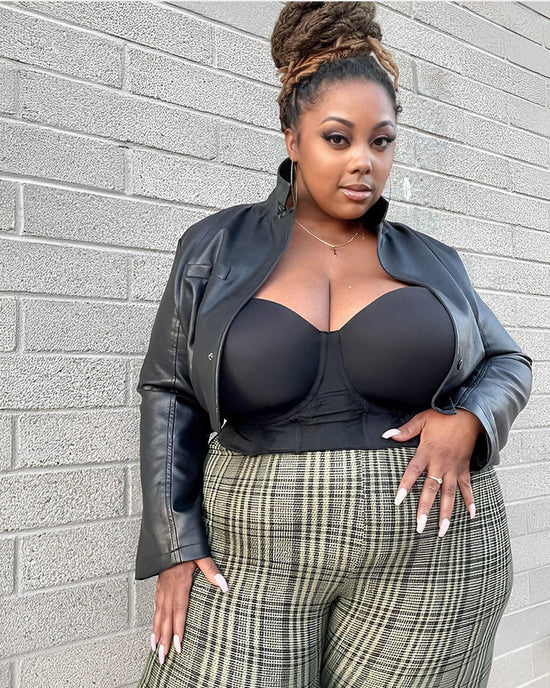 Smooth front panels and side wings provide exceptional lift and minimize bust appearance. Removable straps offer versatility, and the low-back design ensures a sleek silhouette.