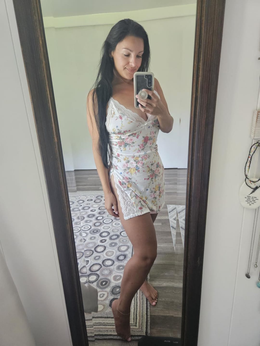 This is so soft to the touch and beautiful-it's simple yet sexy-fits true to size -the slit on both sides is really high
