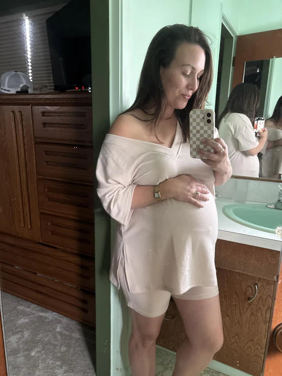 Whether one month postpartum, running errands, working from home, or just overthinking what to wear — this is the set that helps you feel like you again. No effort, no stress. Just slip it on and go.