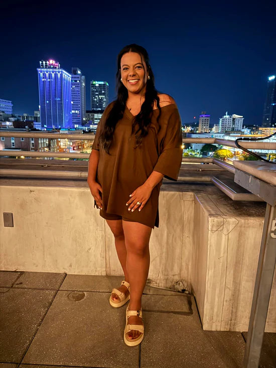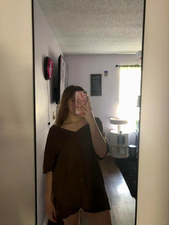 Slip into effortless comfort and confidence with this summer-ready 2-piece loungewear set. Designed to flatter all body types, the deep V-neck oversized tee and curve-hugging biker shorts are perfect for lounging, layering, or stepping out in style. Soft, breathable, and incredibly versatile—you'll never want to take it off.