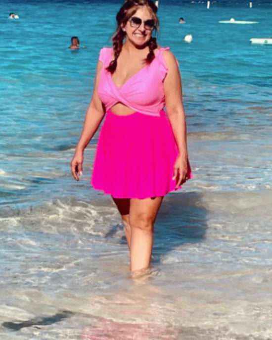 Step into the spotlight with this ultra-flattering one-piece swimsuit that sculpts, supports, and makes a statement. With its ruched tummy control, adjustable tie-knot front, and open back detail, it offers a confident blend of coverage and allure. Whether you're lounging poolside or chasing waves at the beach, this suit hugs you in all the right places while keeping comfort at its core.
