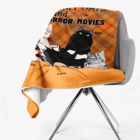 Cuddle My Cats And Watch Horror Movies - Personalized Blanket