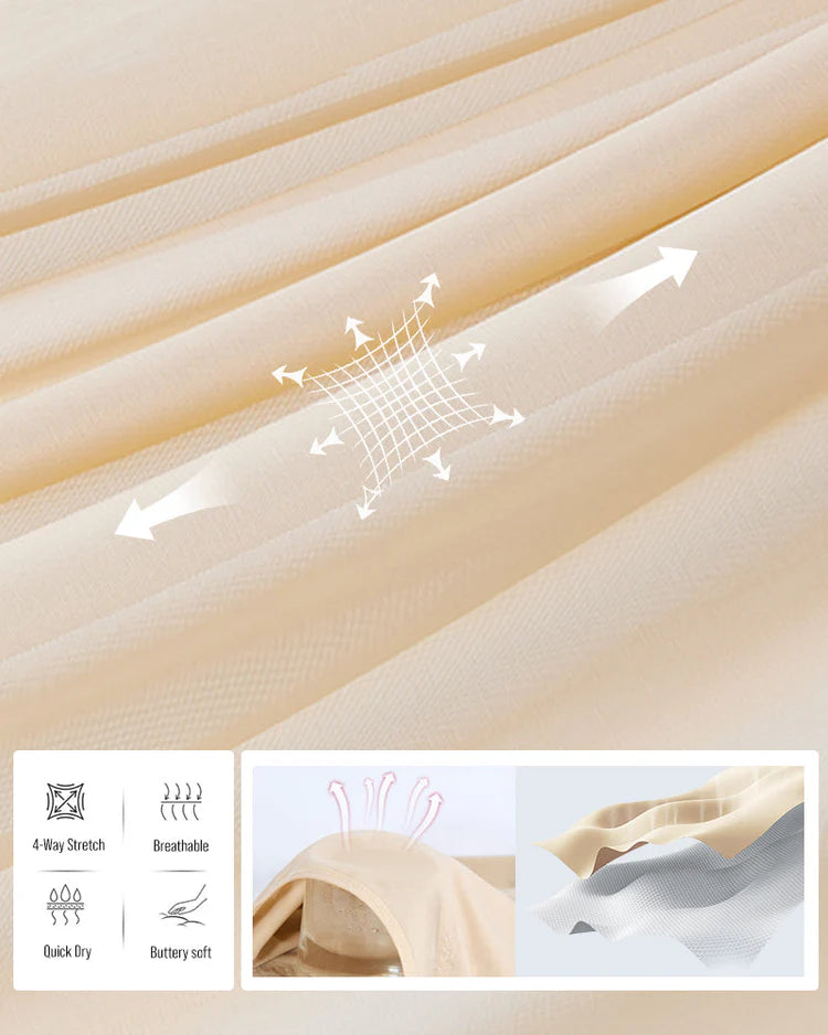 Made from 70% nylon and 30% spandex, this shapewear is soft, breathable, and highly elastic for daily wear. The smooth fabric ensures invisible shaping with no bra lines or pucker. For best results, hand wash and hang to dry. Avoid ironing, machine washing, or dry cleaning to maintain elasticity and prolong product life.