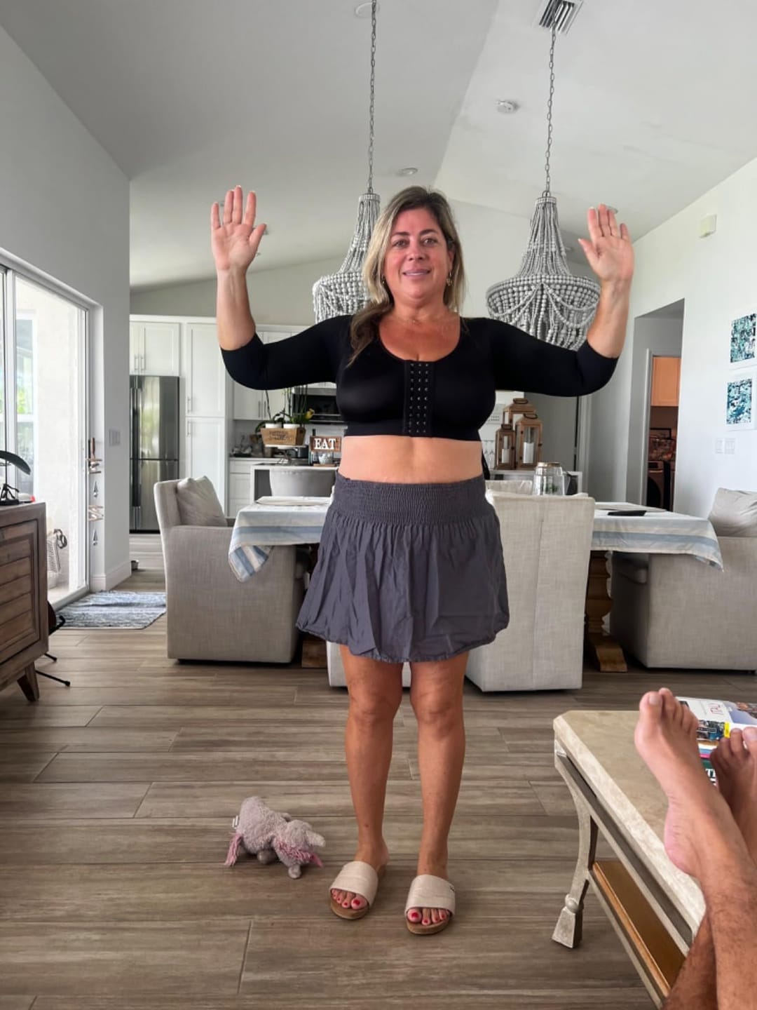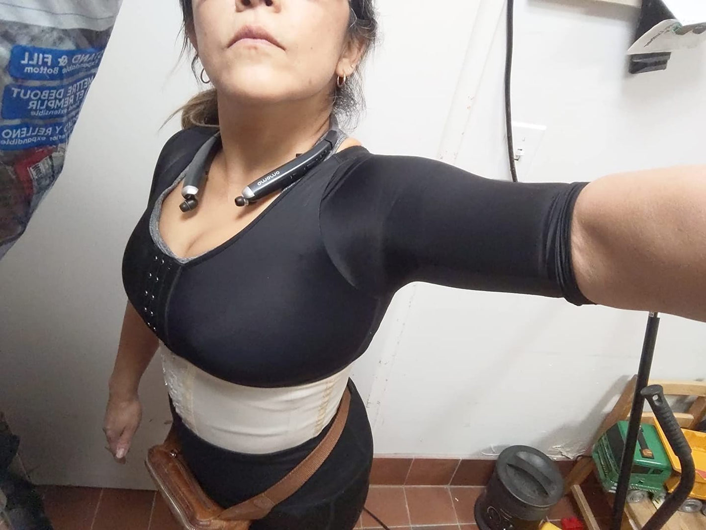 Designed with 3/4 compression sleeves, this arm shaper smooths flabby arms and gives a slimmer silhouette instantly. The “X” back design pulls shoulders back for improved posture, keeping you upright and confident. Perfect for reducing arm jiggle and supporting recovery after liposuction, surgery, or postpartum, while still invisible under clothing.