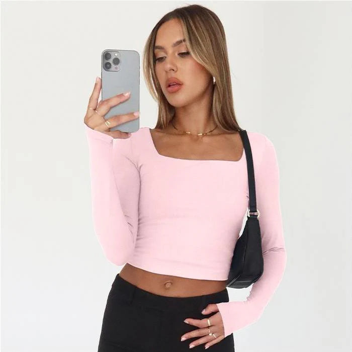 — this long-sleeve crop top blends vintage vibes with modern comfort to flatter and frame your silhouette.