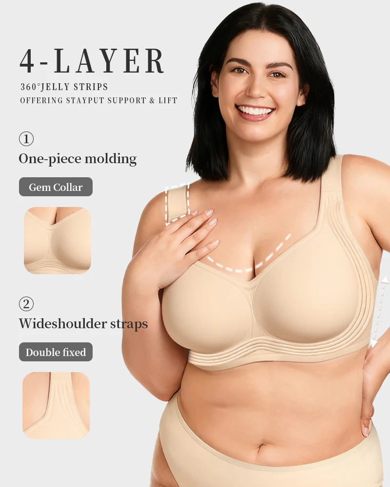 Engineered with 4-layer 360° jelly strips, this bra redefines wireless support. The flexible strips hug your curves, delivering gentle lift while keeping the bra firmly in place. No slipping, no shifting—just secure, long-lasting hold that adapts to every movement of your day.
