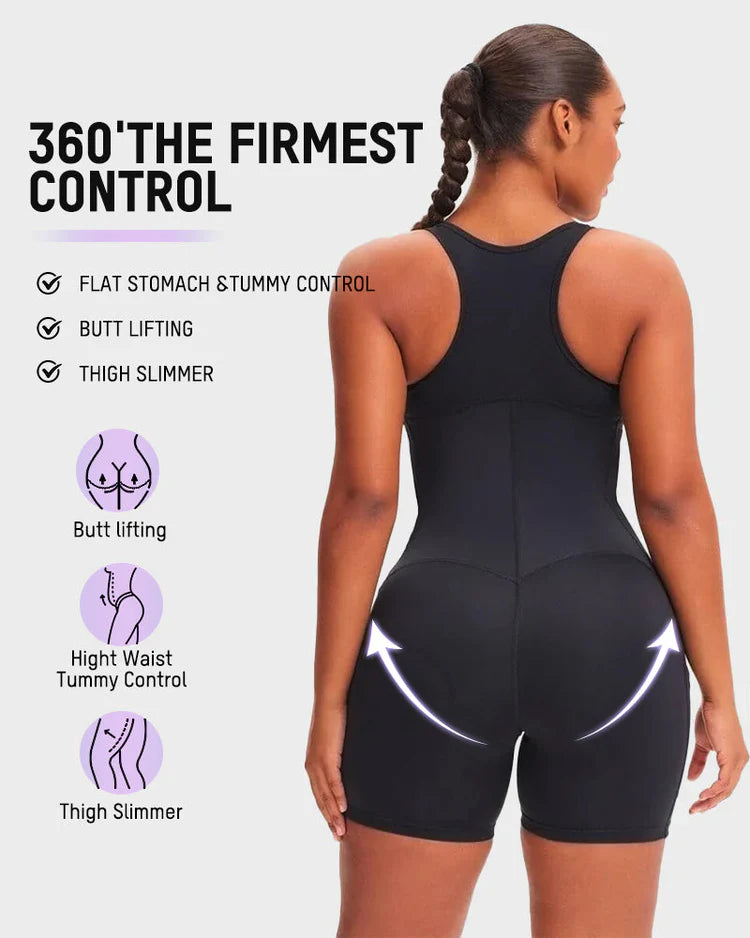 Step into a new level of performance with this sauna-inspired compression romper. Designed to make you sweat and shed water weight faster, it flattens your tummy while supporting your bust with a built-in shockproof bra. Comfortable yet powerful, it’s perfect for workouts, runs, or even errands—all while keeping you stylish and secure.